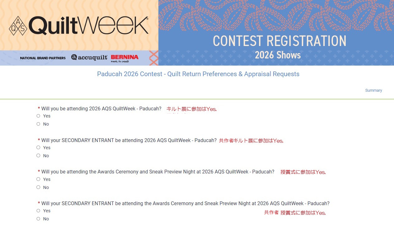 パドゥーカの場合、キルト展や授賞式の参加についての質問があります。