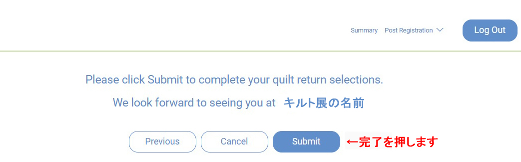 ログインする時期によってエントリーしたキルトの情報以外の画面になることがあります。