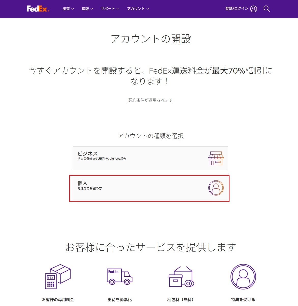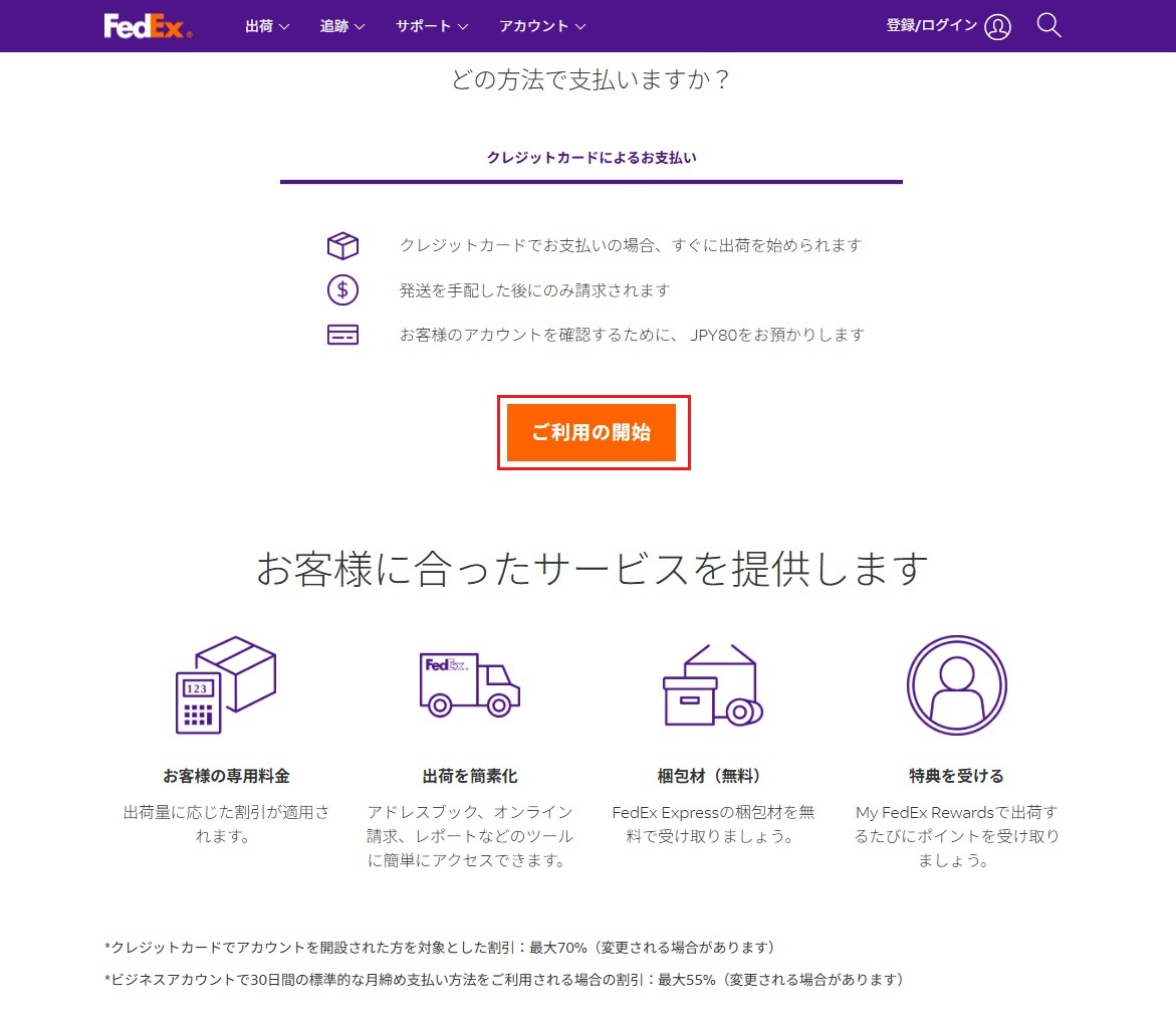 FedExの利用に当たっては次のようにします。
