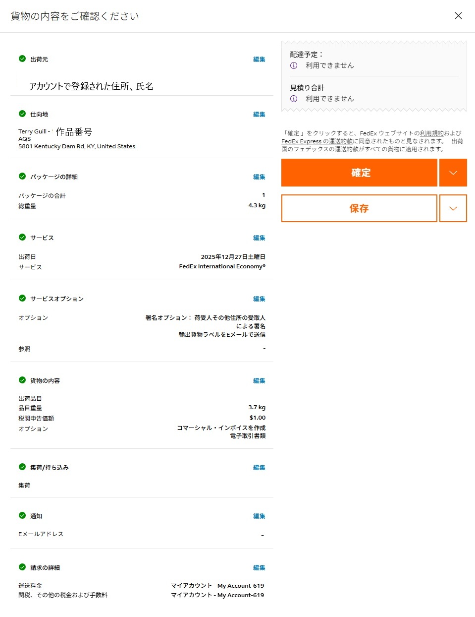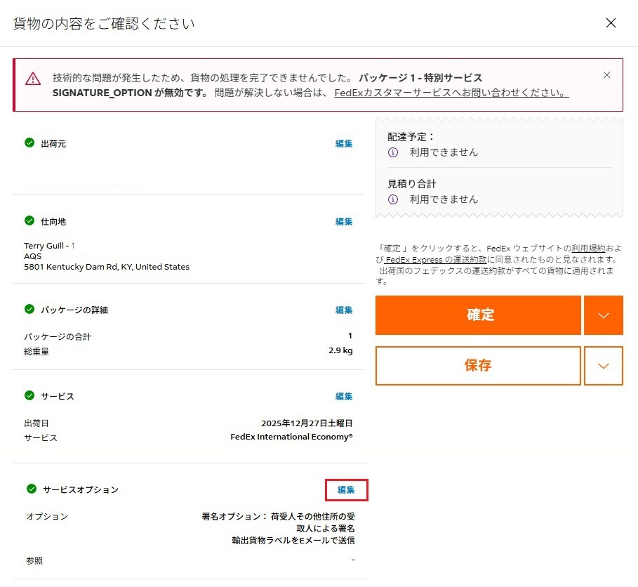 不明な点はFedExにお聞きください。