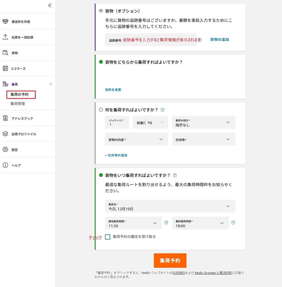 集荷の予約